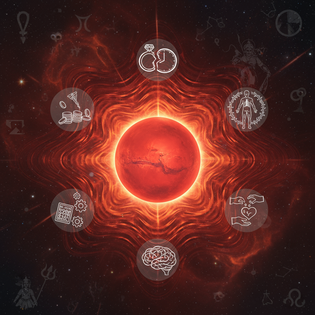Mangal Dosha doesn’t stop at one problem; it often creates a ripple effect. It may begin with marriage getting delayed or difficulties in finding the right match, but then it spreads into other areas like strained health, financial instability, or challenges in career growth. Homes may feel tense, with repeated misunderstandings or arguments.